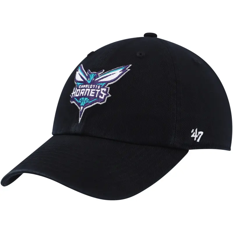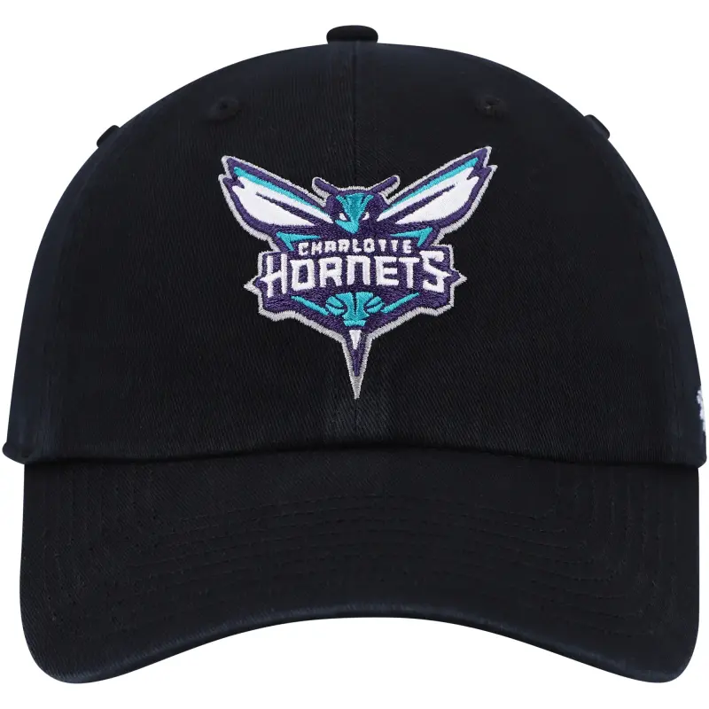 Men’s Charlotte Hornets ’47 Black Team Logo Clean Up Adjustable Hat