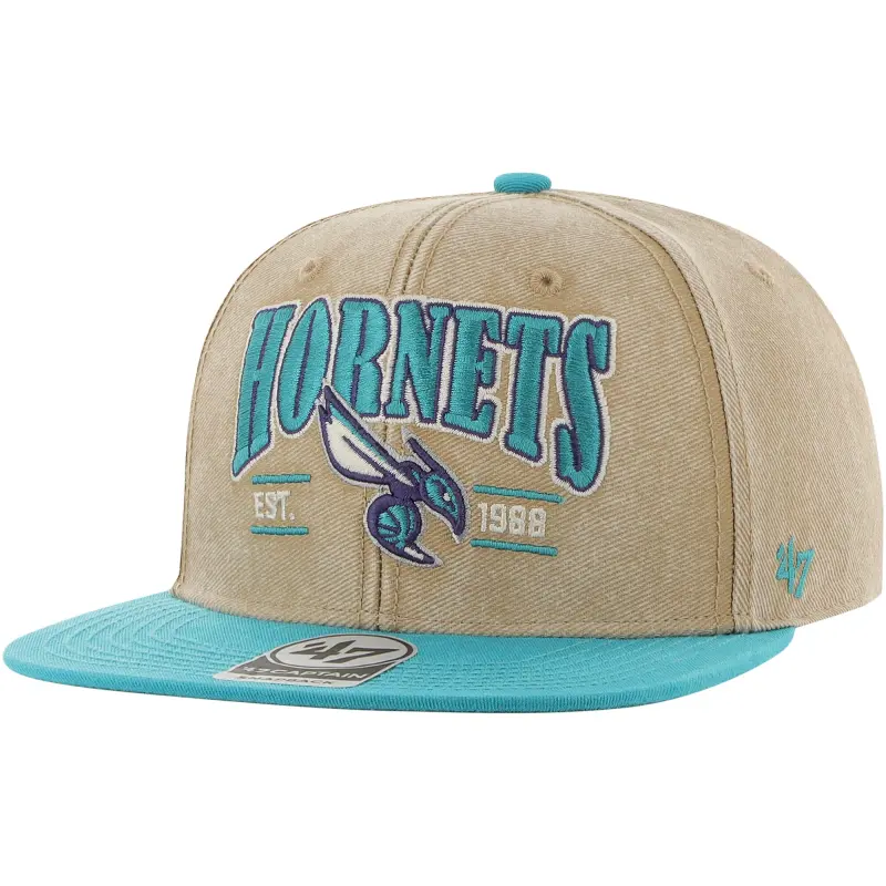 Men’s Charlotte Hornets ’47 Khaki/Teal Chilmark Captain Snapback